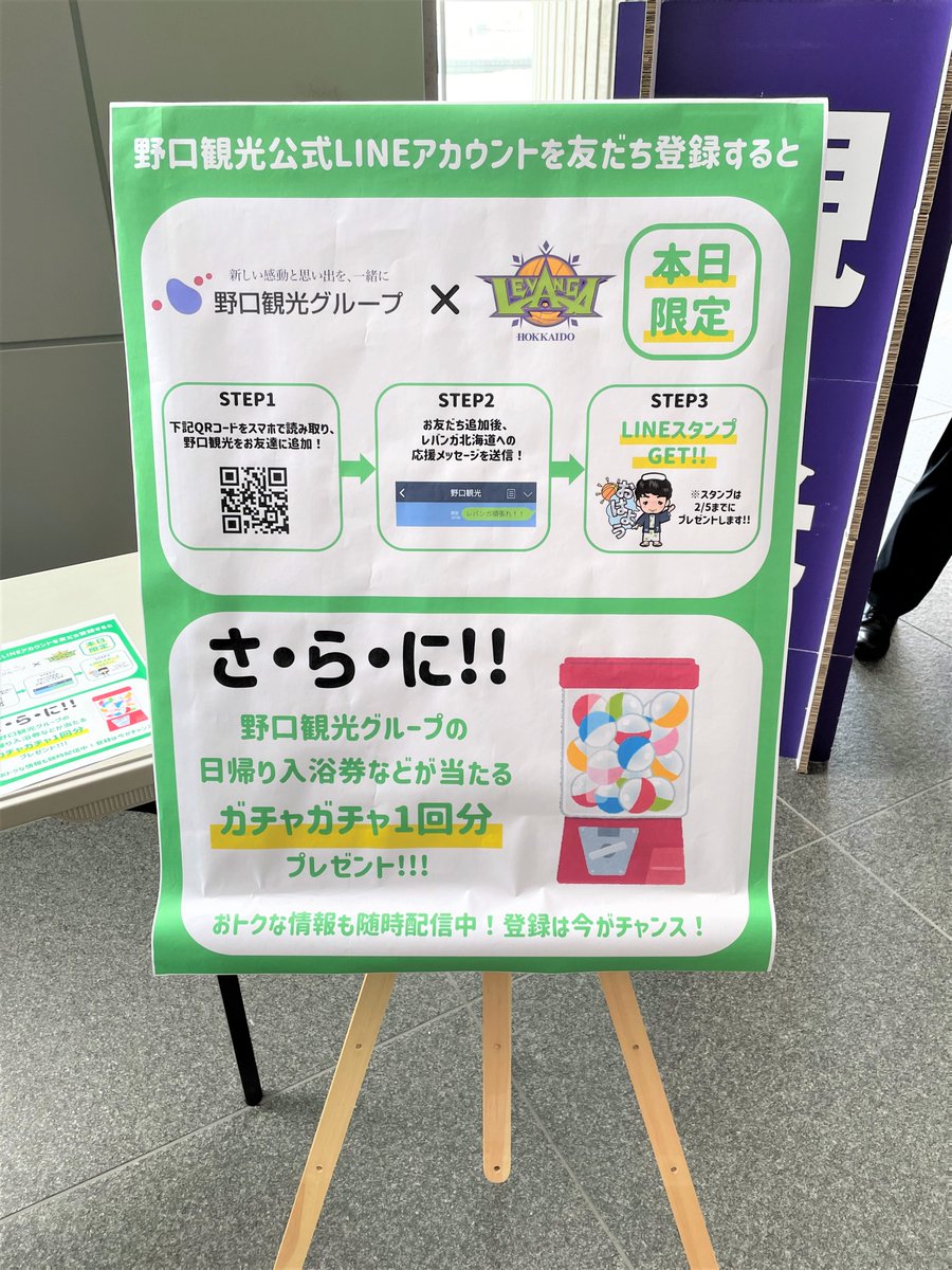 1/29(土)#野口観光 Presents🏀野口観光さまのブースへ、Let’sGO💨💚💚野口観光公式LINE友達登録で、オリジナルコ... [レバンガ北海道【Twitter】] | レバンガ北海道