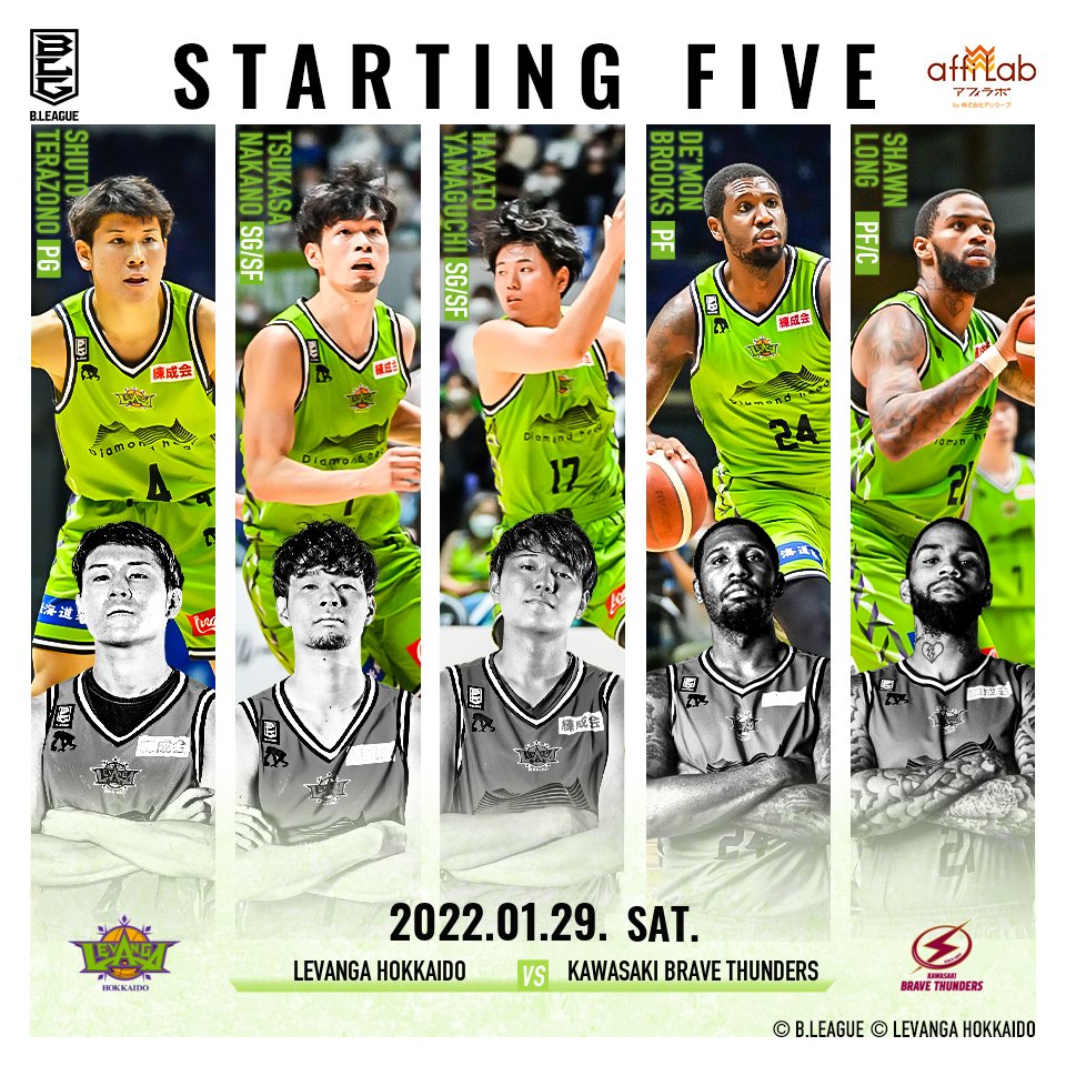【Today's Starting5】B.LEAGUE 2021-22 SEASON 第19節2022.1.29.SAT.vs川崎ブレイブサ... [レバンガ北海道【Twitter】] | レバンガ北海道