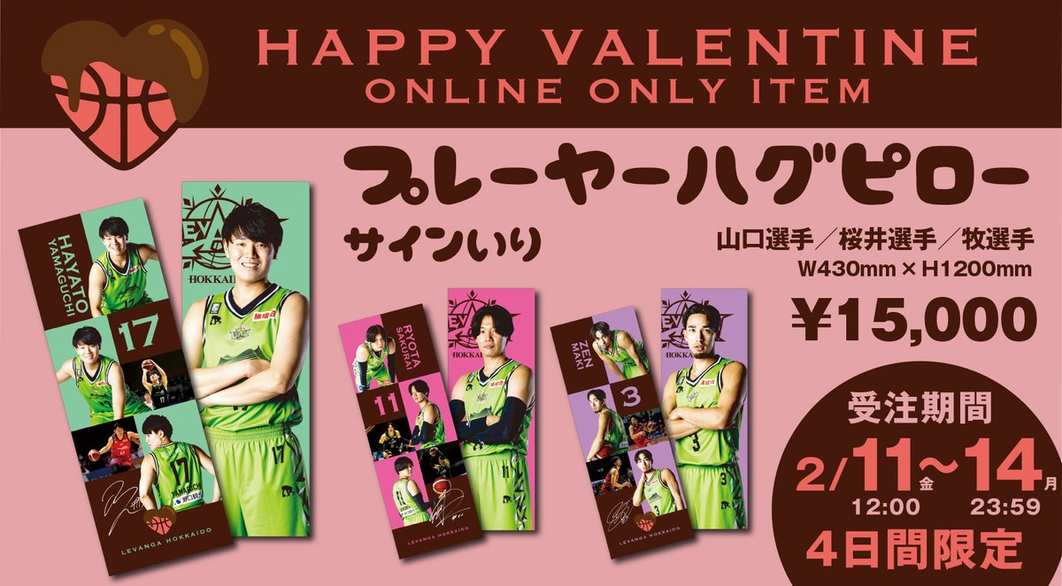 オーダー受付中💓バレンタイン企画「サイン入りハグピロー」2/14(月) 23:59までとなっております。お見逃しなく🙇♂️https:... [レバンガ北海道【Twitter】] | レバンガ北海道