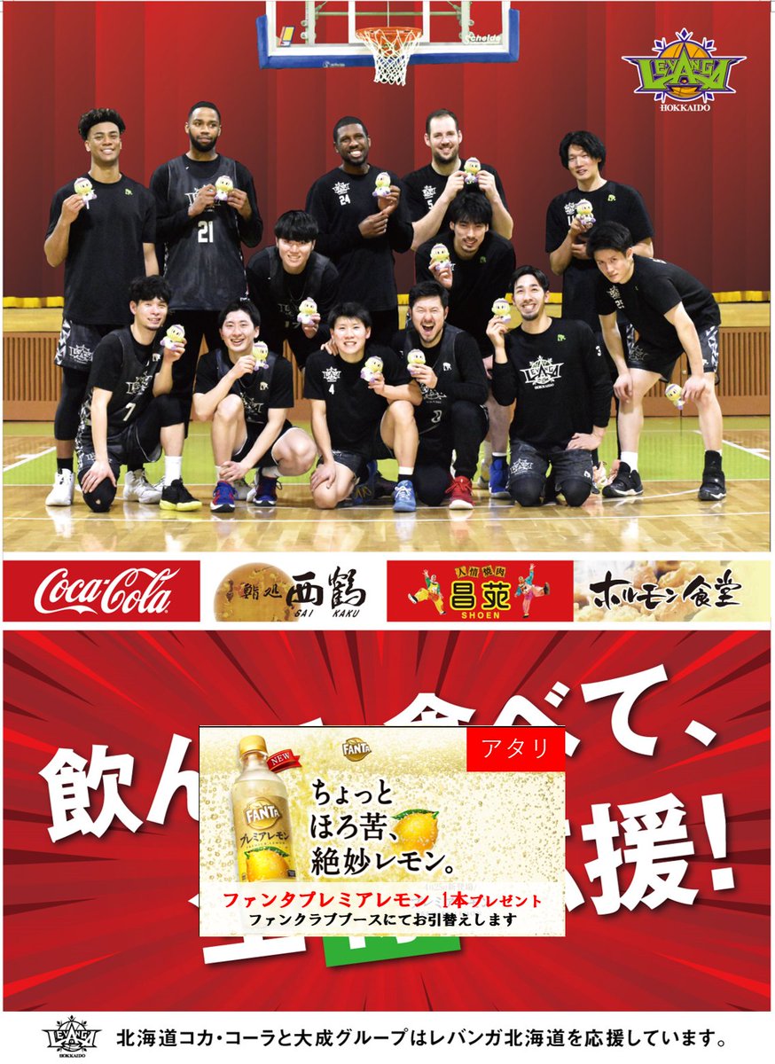 5/7(土)#コカ・コーラ presents 🆚富山 \ファンタ プレミアレモン 1本が当たる🍋🎯/【5/7(土)限定】入場口で配布の... [レバンガ北海道【Twitter】] | レバンガ北海道