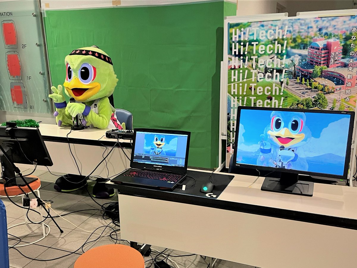 5/7(土)#コカ・コーラ presents🆚富山#eスポーツ 体験コーナーにレバードが遊びに行きました💚背景が緑の前にレバードが座ると... [レバンガ北海道【Twitter】] | レバンガ北海道