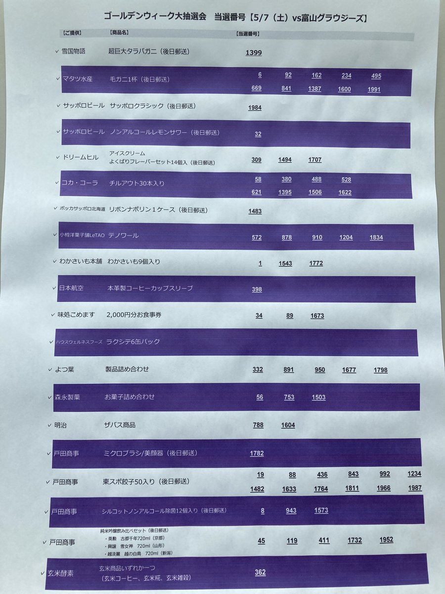 本日5/7(土)の『ゴールデンウイーク大抽選会』🎯当選番号の発表です🎊📣当選された方は💁【1階 特設ブース】にて当選番号の券をご提示... [レバンガ北海道【Twitter】] | レバンガ北海道