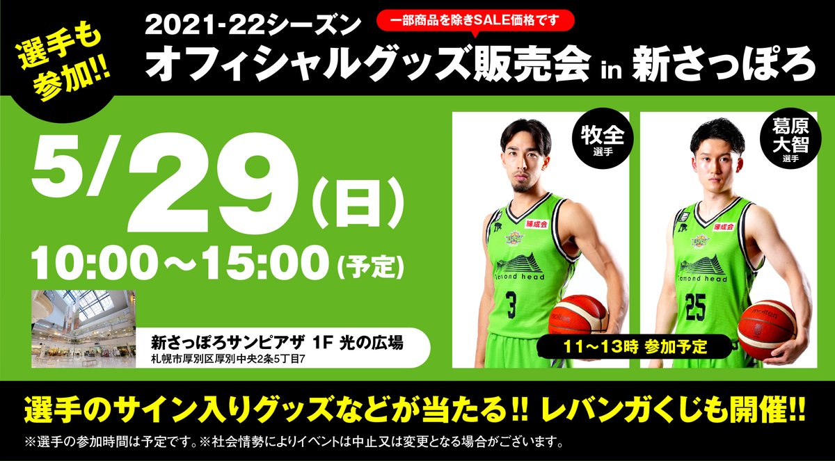 / いよいよ今週末5/29(日)📢2021-22 SEASON オフィシャルグッズ販売会🏀💚ご来場お待ちしております🍀\ 🗓️5/... [レバンガ北海道【Twitter】] | レバンガ北海道