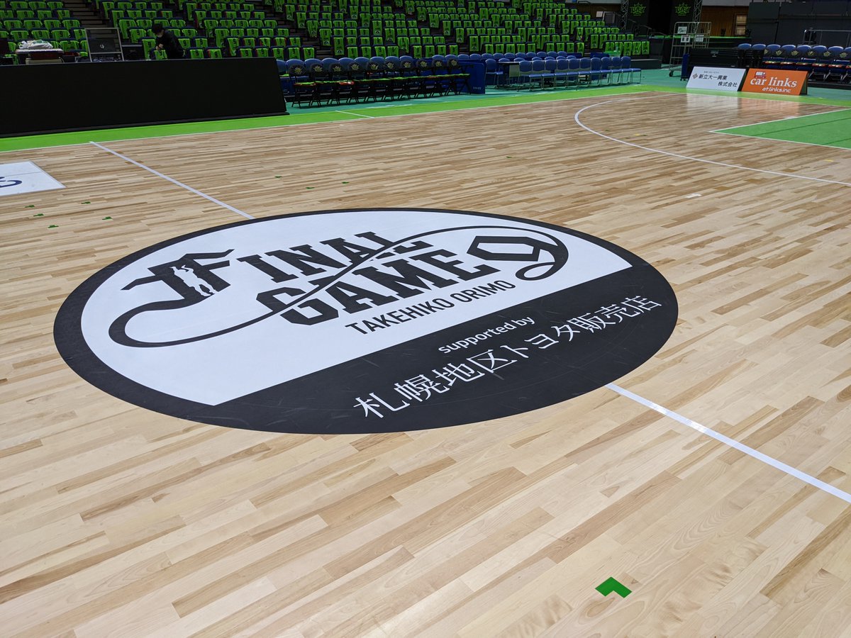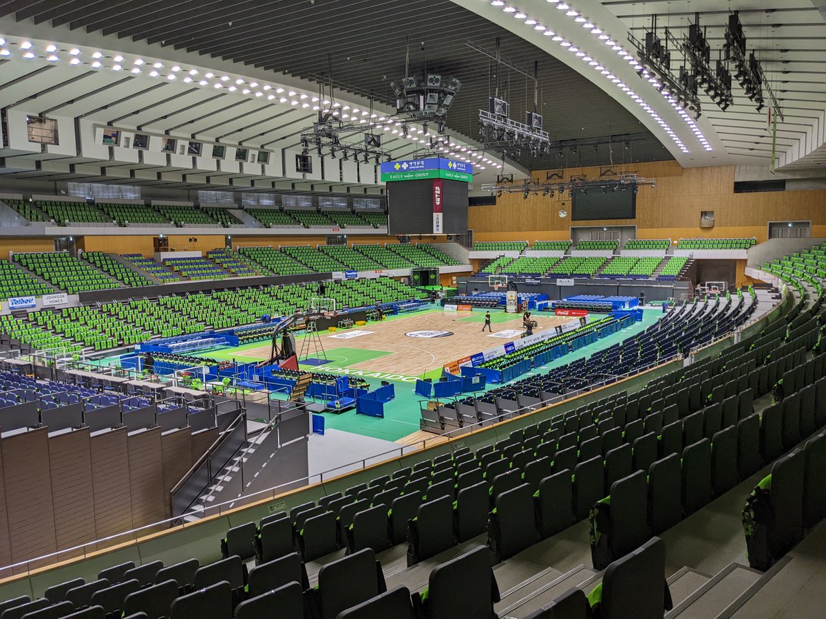 #折茂武彦引退試合 まで、あと1⃣日本日も設営を開始しています💪レバンガグリーンに染まるアリーナ🍀この日だけの特別な装飾の数々... [レバンガ北海道【Twitter】]
