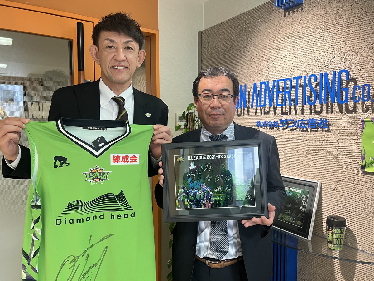 ⛹️♂️シーズン終了のご挨拶🙏オフィシャルパートナーである #株式会社サン広告社 様へ2021-22シーズン終了のご挨拶訪問をさせていた... [レバンガ北海道【Twitter】] | レバンガ北海道