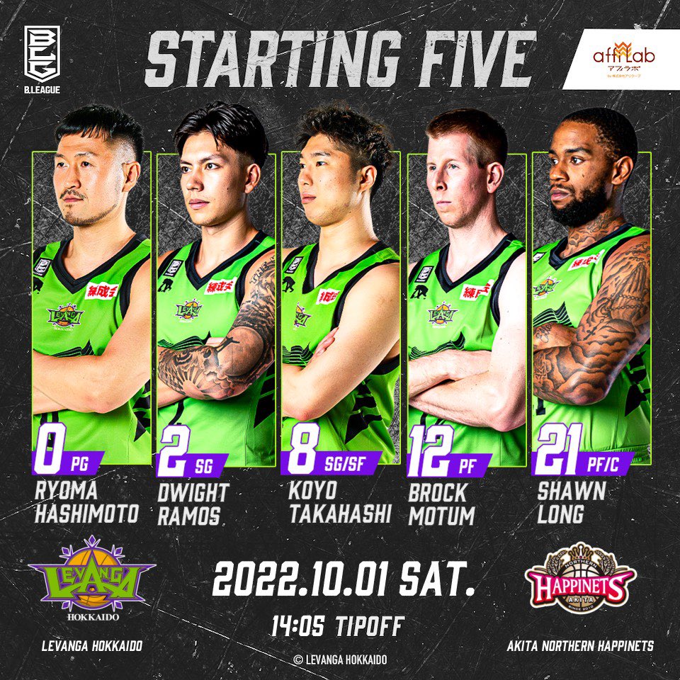 Today's Starting50 #橋本竜馬2 #ドワイト・ラモス8 #高橋耕陽12 #ブロック・モータム21 #ショーン・ロングTod... [レバンガ北海道【Twitter】]