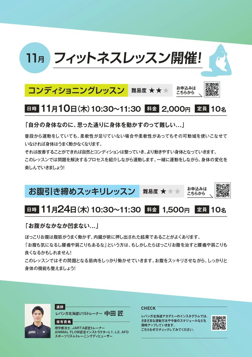 【お知らせ】運動の秋🍁 #レバンガ北海道 アカデミー主催のフィットネスレッスンを開催✨18歳〜60歳の方を対象に『コンディショニング... [レバンガ北海道【Twitter】] | レバンガ北海道