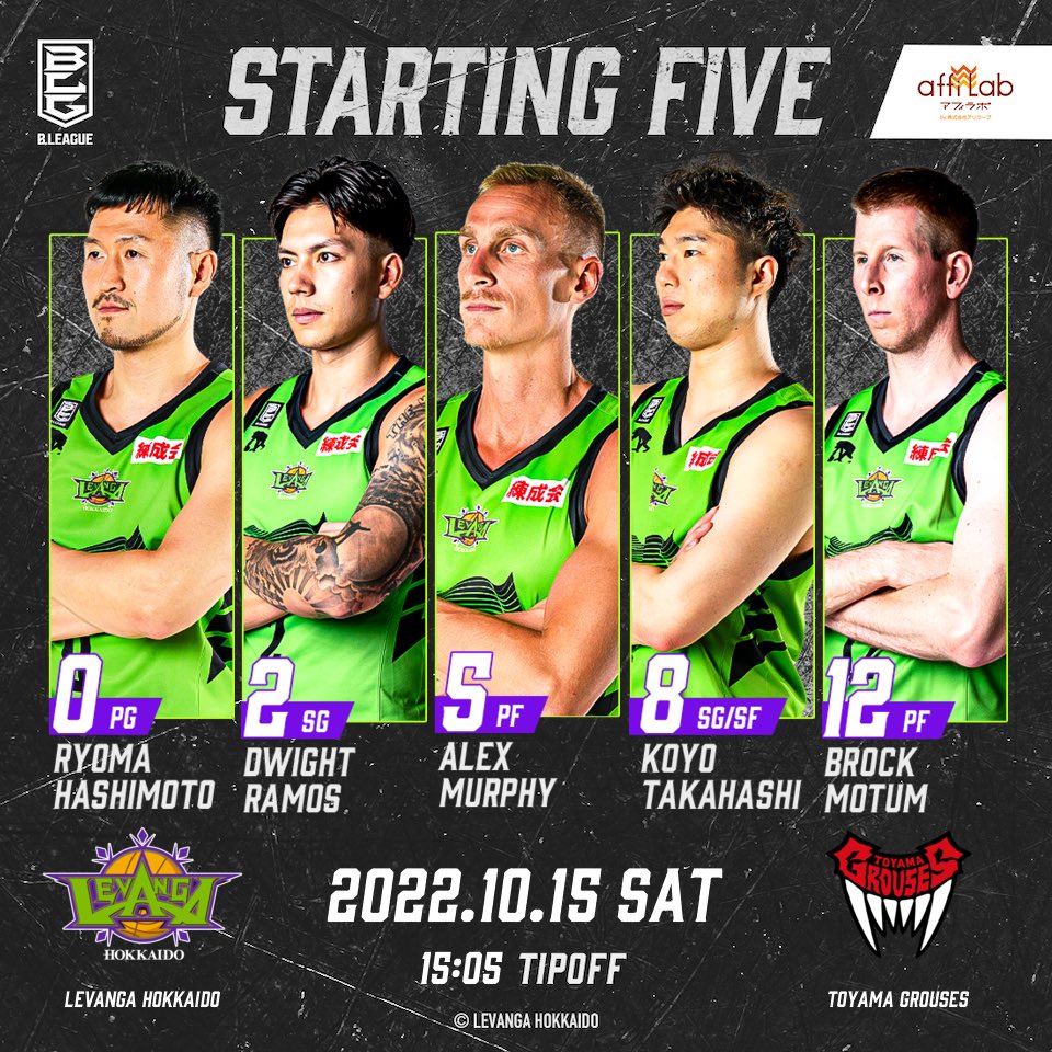 Today's Starting50 #橋本竜馬2 #ドワイト・ラモス5 #アレックス・マーフィー8 #高橋耕陽12 #ブロック・モータムT... [レバンガ北海道【Twitter】] | レバンガ北海道