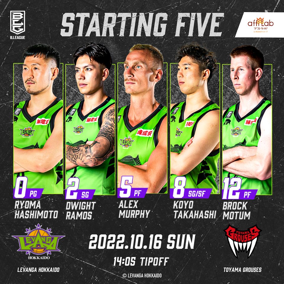 Today's Starting50 #橋本竜馬2 #ドワイト・ラモス5 #アレックス・マーフィー8 #高橋耕陽12 #ブロック・モータムT... [レバンガ北海道【Twitter】]