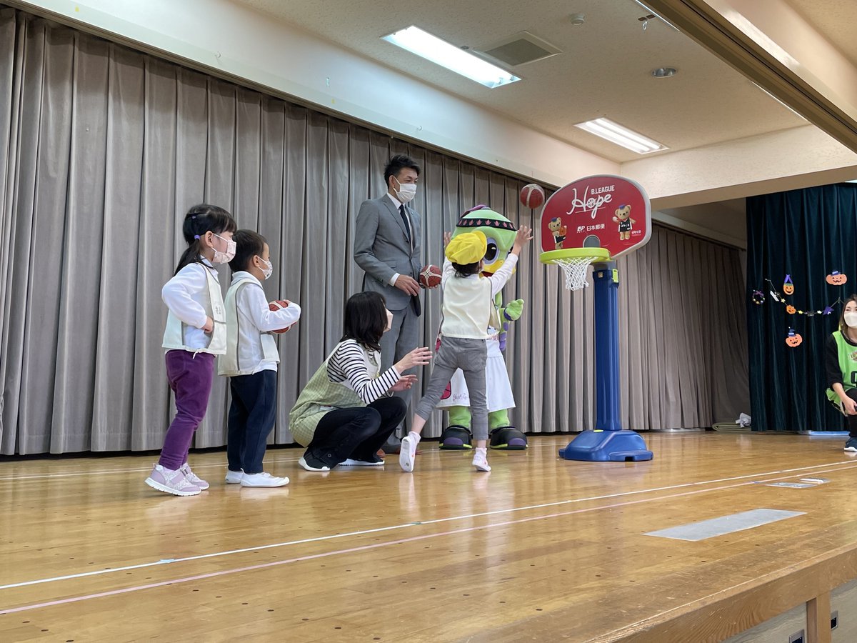 「届け、バスケ! supported by #日本郵便」事業として #レバンガ北海道 のマスコットキャラクター #レバード が #大藤学園本郷幼稚園 を訪問し、バスケットゴールとボールを贈呈しました🏀✨