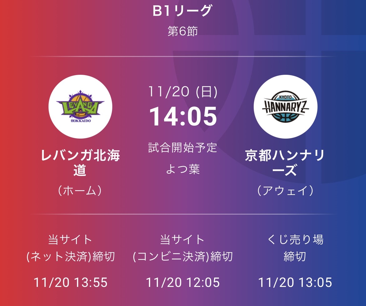 #1試合予想くじ #WINNER 試合開始10分前まで購入が可能です🏀✨📆11/19(土)🕒15:05 TIP OFF📆11/20(... [レバンガ北海道【Twitter】]