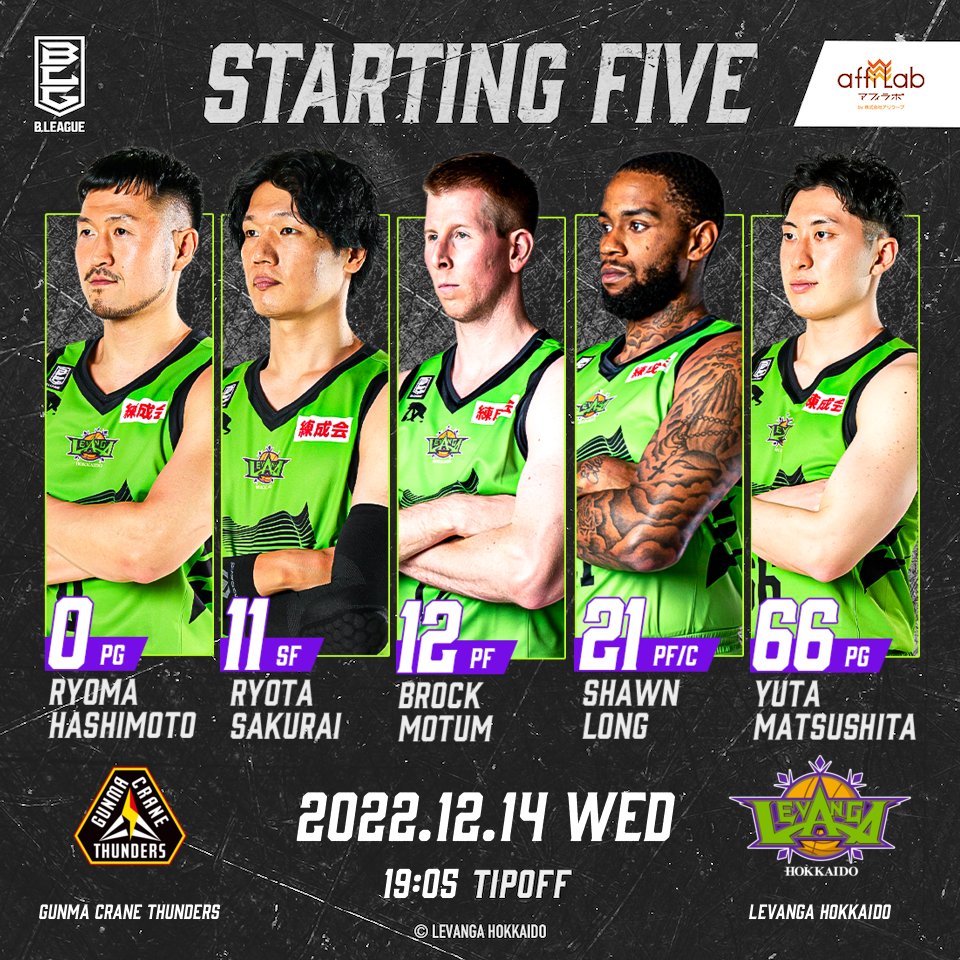 Today's Starting50 #橋本竜馬11 #桜井良太12 #ブロック・モータム21 #ショーン・ロング66 #松下裕汰Today... [レバンガ北海道【Twitter】]