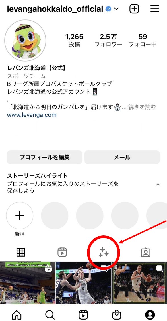 #レバンガ北海道 公式instagram エフェクト更新🆙TOPページの【✨】マークから、#ProVision 様のAR技術により360度... [レバンガ北海道【Twitter】]