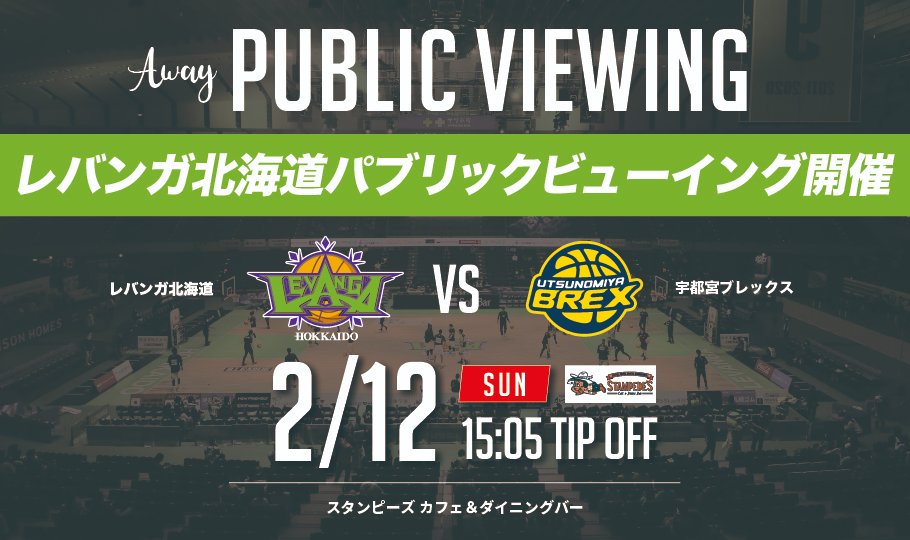 【お知らせ】2/12(日)#宇都宮ブレックス 戦のパブリックビューイングの開催が決定いたしました🔥AWAY戦を闘うチームへ会場から熱い後.... [レバンガ北海道【Twitter】] | レバンガ北海道
