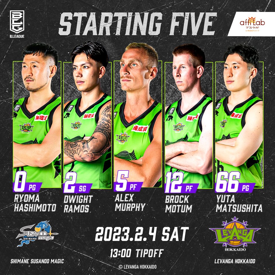 Today's Starting50 #橋本竜馬2 #ドワイト・ラモス5 #アレックス・マーフィー12 #ブロック・モータム66 #松下裕汰... [レバンガ北海道【Twitter】]