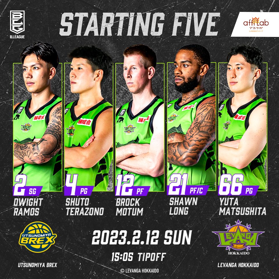 Today's Starting52 #ドワイト・ラモス4 #寺園脩斗12 #ブロック・モータム21 #ショーン・ロング66 #松下裕汰To... [レバンガ北海道【Twitter】] | レバンガ北海道