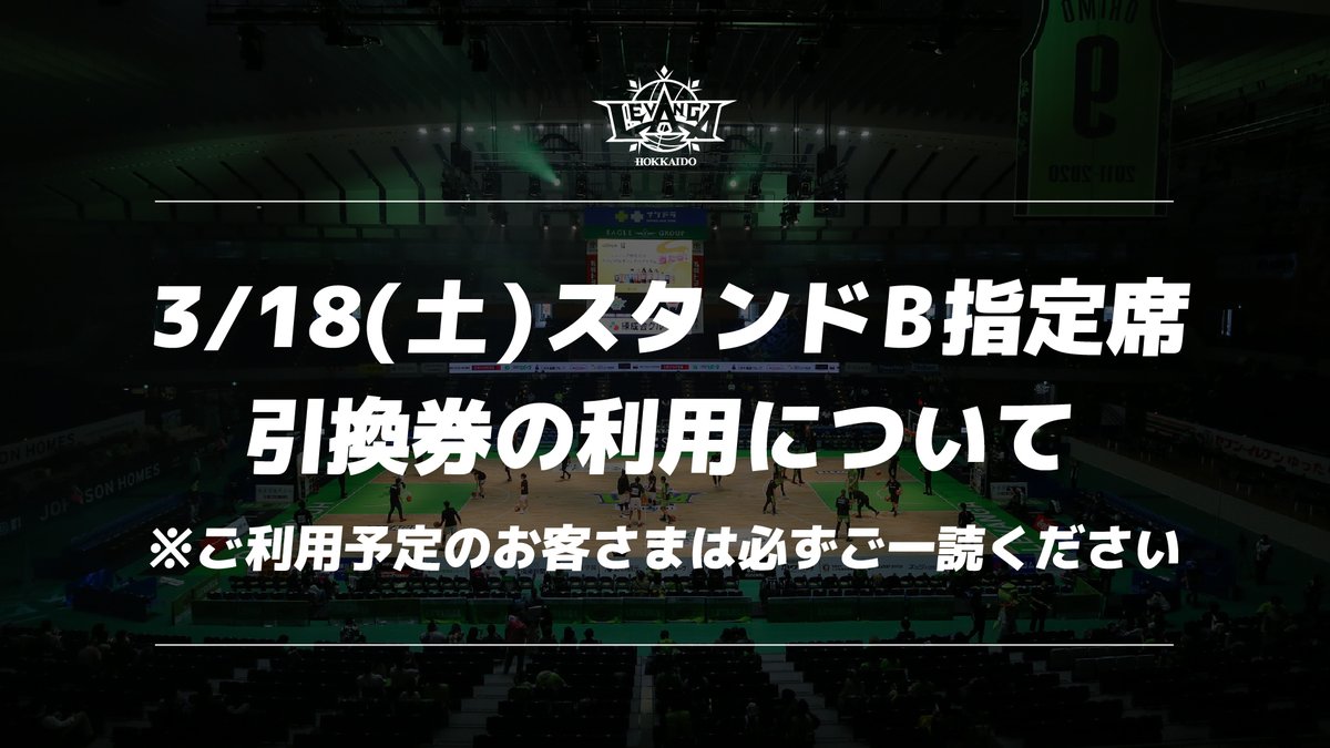 ⚠️3/18(土)三河戦 GAME2のスタンドB指定席残りわずかです🙇🙏FC特典やイベント等でお渡ししている『スタンドB指定席引換券』は... [レバンガ北海道【Twitter】] | レバンガ北海道