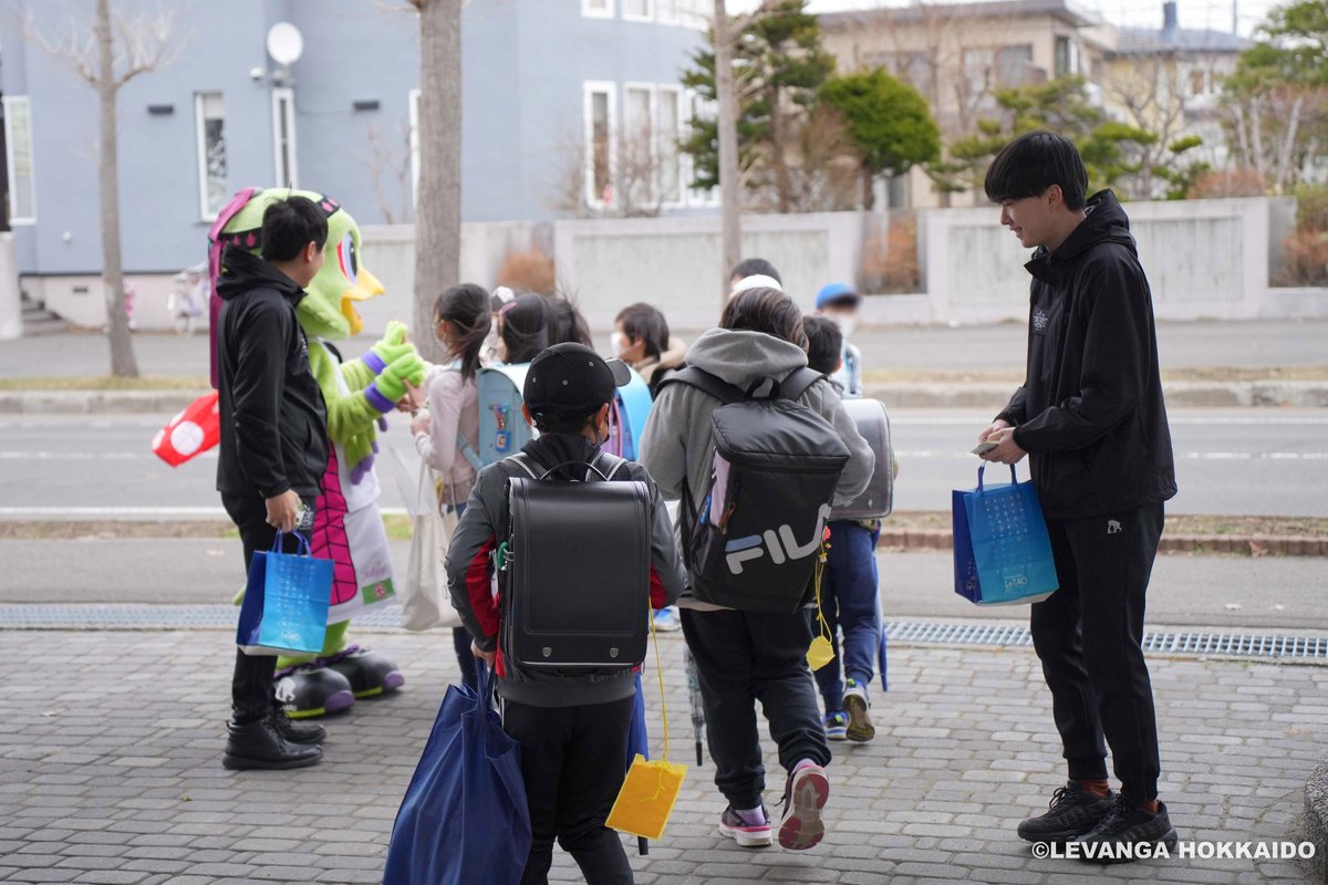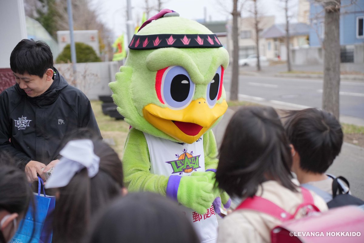 先日、札幌市立ノホロの丘小学校にて、#レバード が交通安全パトロールを通じて児童の皆さんと交流させていただきました🚥また当日は... [レバンガ北海道【Twitter】]