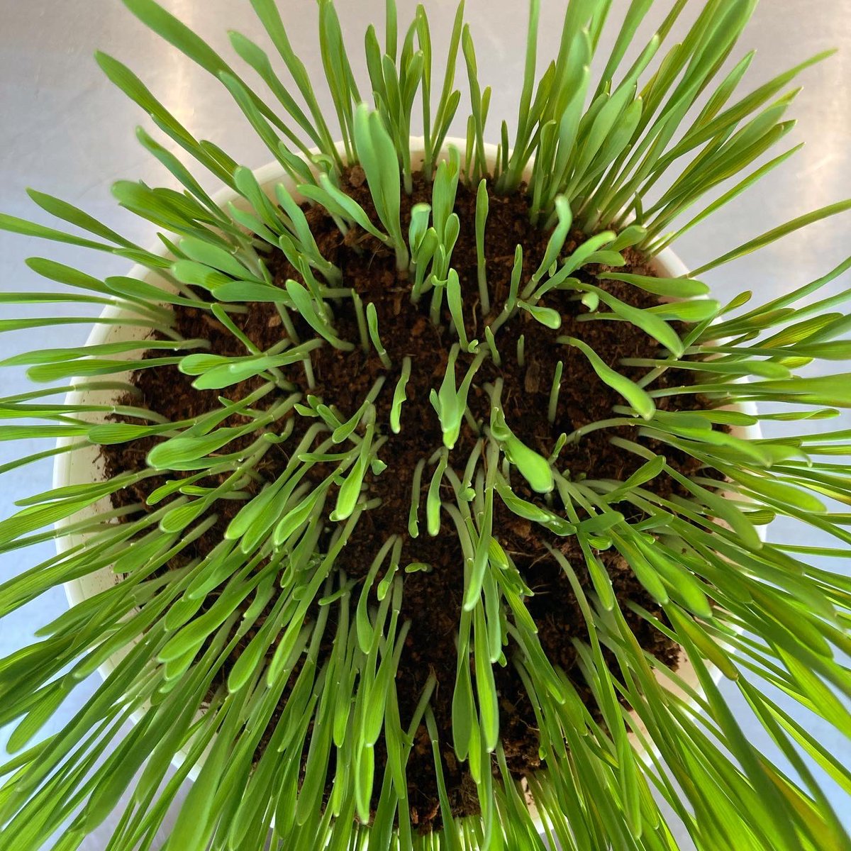 まだ引っぱるか猫草、なんともう完全に食べごろに!芽が出てからの育ちの早さ凄い!(*゚Д゚艸)#グルグルカリー#猫草 [グルグルカリー【Twitter】] | グルグルカリー