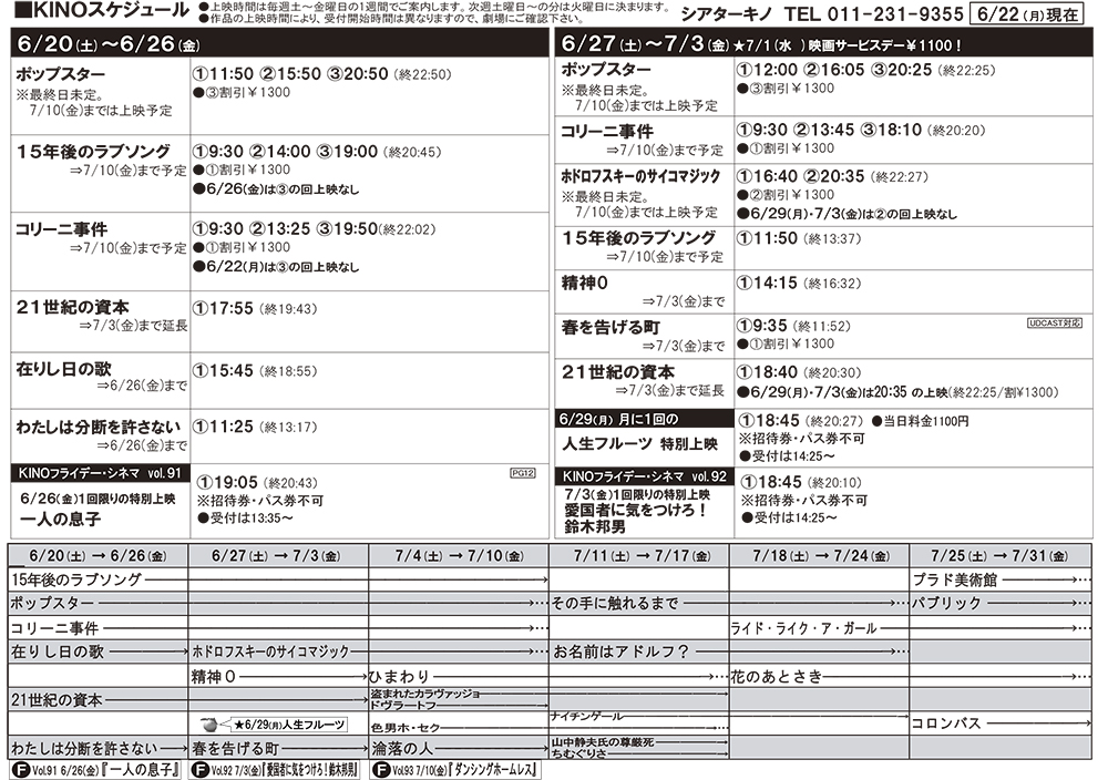 6/27(土)~7/3(金)の上映時間が決定しました。 [シアターキノ【Twitter】] | シアターキノ