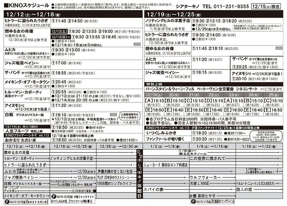 12/19(土)〜25(金)の上映時間が決まりました#シアターキノ #札幌 #映画 https://t.co/IwdK36bFXT [シアターキノ【Twitter】] | シアターキノ