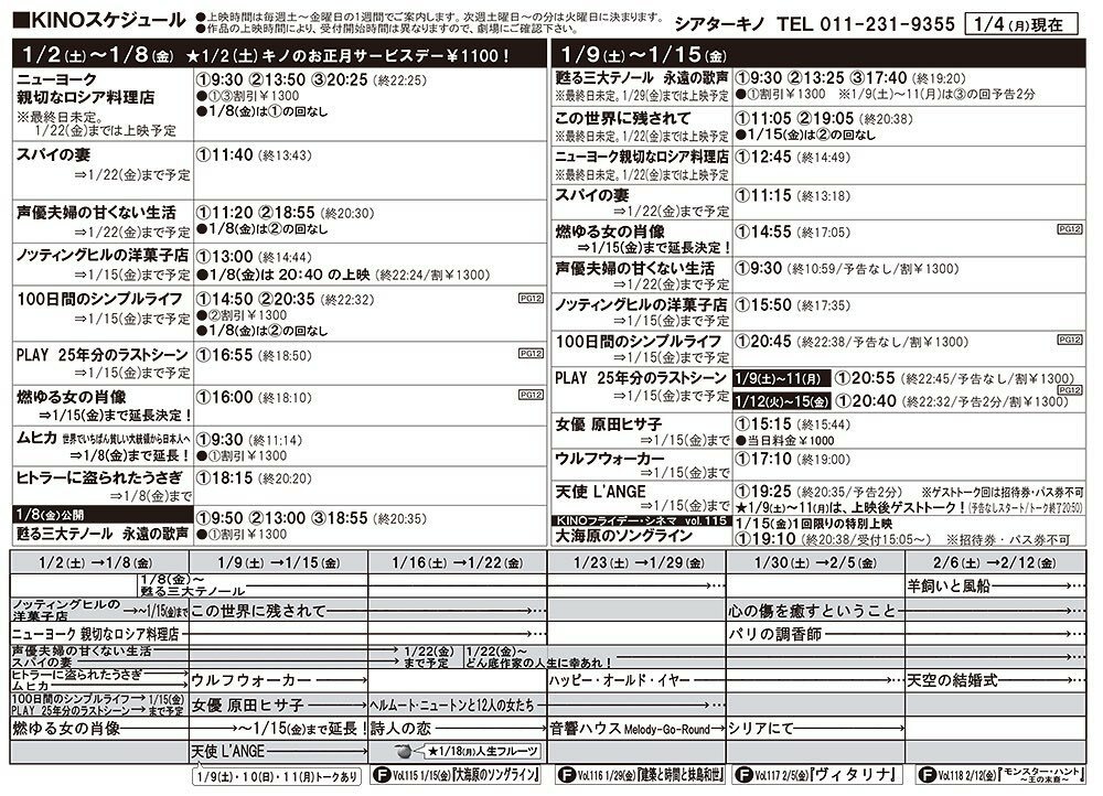 1/9(土)→15(金)までの上映時間が決まりました。#シアターキノ #札幌 #映画館 https://t.co/FOQxO7PhsE [シアターキノ【Twitter】] | シアターキノ