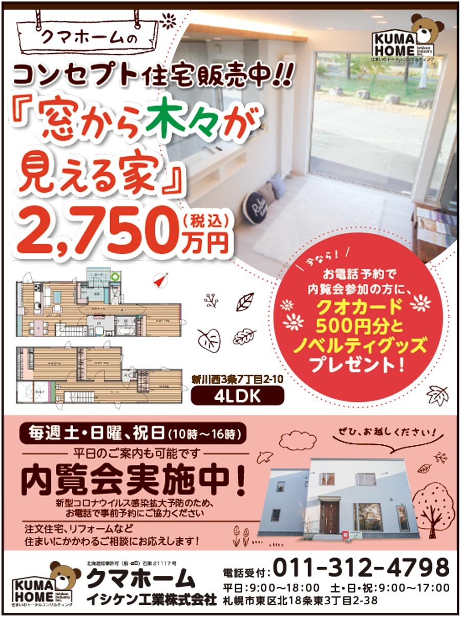 クマホームのコンセプト住宅販売中!!「窓から木々が見える家」2,750万円(税込)