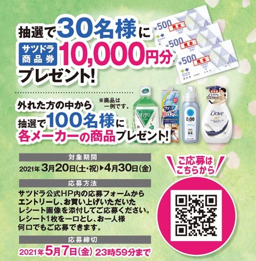 抽選で30名様にサツドラ商品券10,000円分プレゼント!