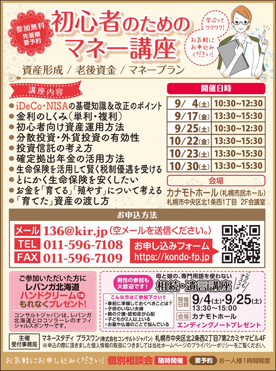 参加無料 先着順 要予約 初心者のためのマネー講座 | 株式会社コンサルトジャパン