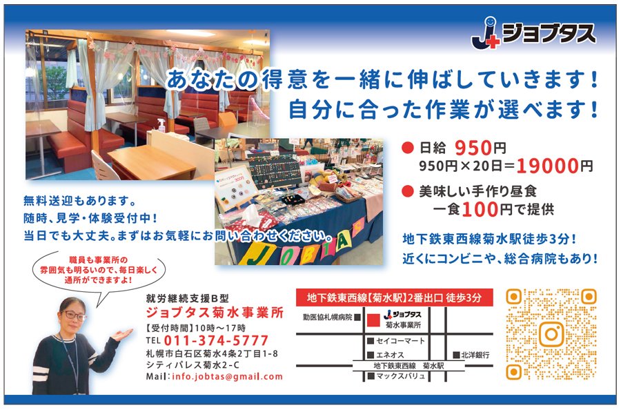 あなたの得意を一緒に伸ばしていきます!自分に合った作業が選べます! | 就労継続支援B型 ジョブタス菊水事業所