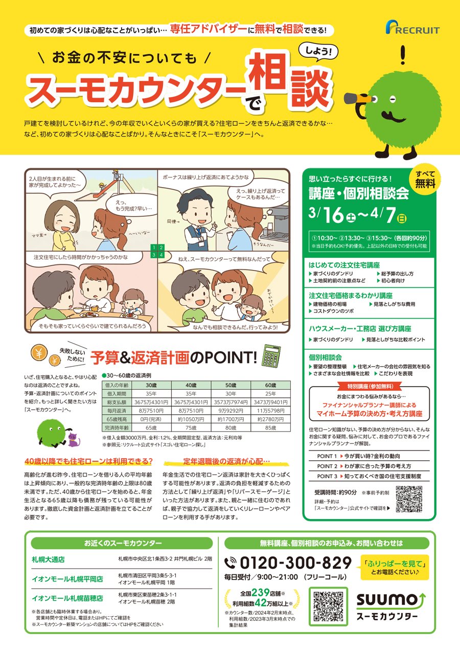【南区版、白石区・厚別区版掲載】スーモカウンターで相談&解決