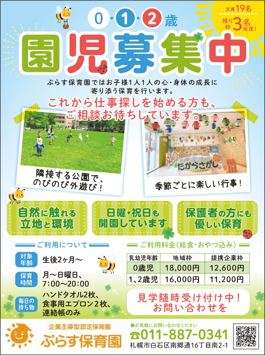 0、1、2歳児募集中!少ない荷物でらくちん登園 保護者の方にも優しい保育園です