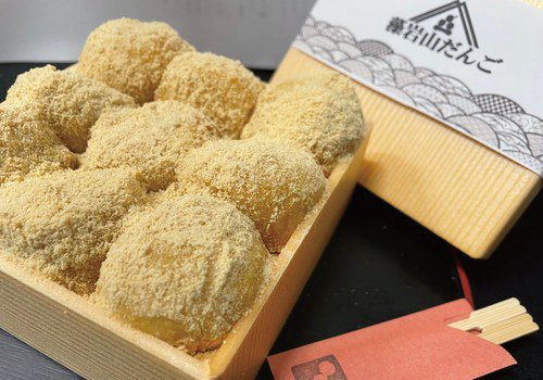 写真は大きめの豆腐白玉に、きな粉をまぶした名物「一寸豆腐白玉」。