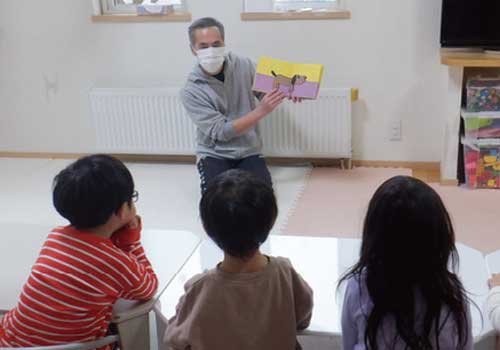 ▲絵本の内容に興味津々な子どもたち
