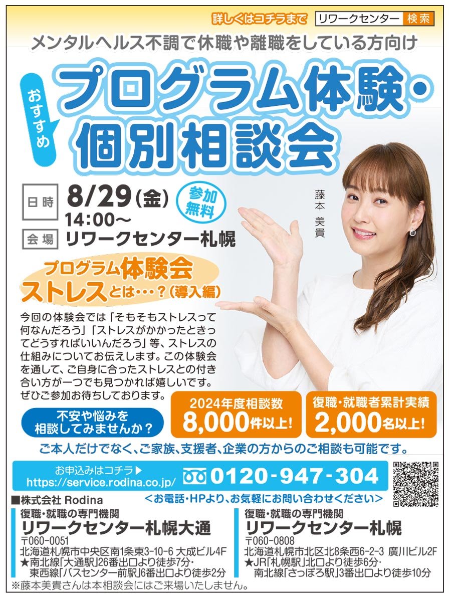 メンタルヘルス不調で休職や離職をしている方向け プログラム体験・個別相談会 | リワークセンター