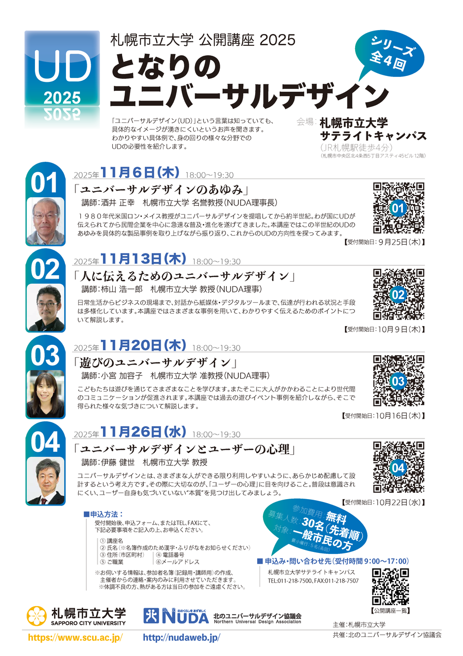 | お問い合わせ | 札幌市立大学サテライトキャンパス(札幌市中央区北4条西5丁目 アスティ45ビル 12階) 電話011-218-7500 |