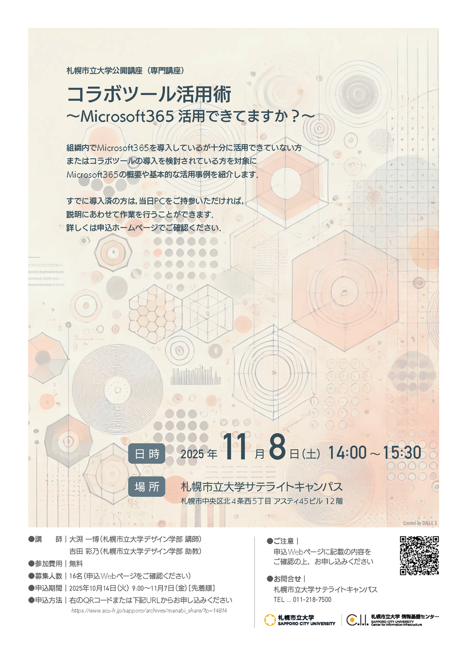 | 場所 | 札幌市立大学サテライトキャンパス (札幌市中央区北4条西5丁目 アスティ45ビル 12階) |