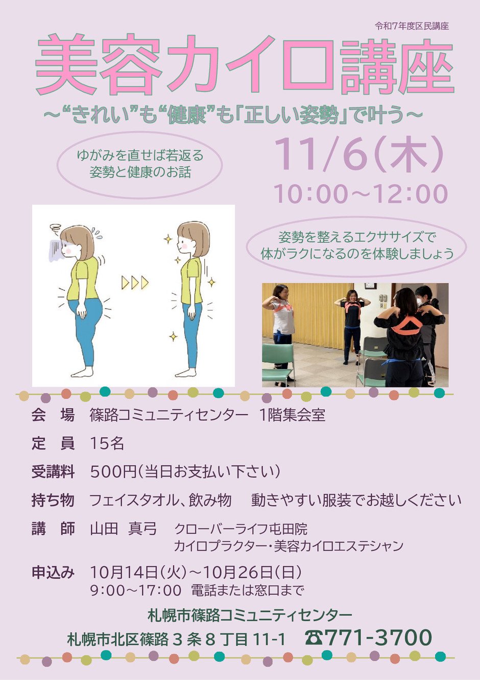 | お問い合わせ | 篠路コミュニティセンター TEL 011-771-3700 |
