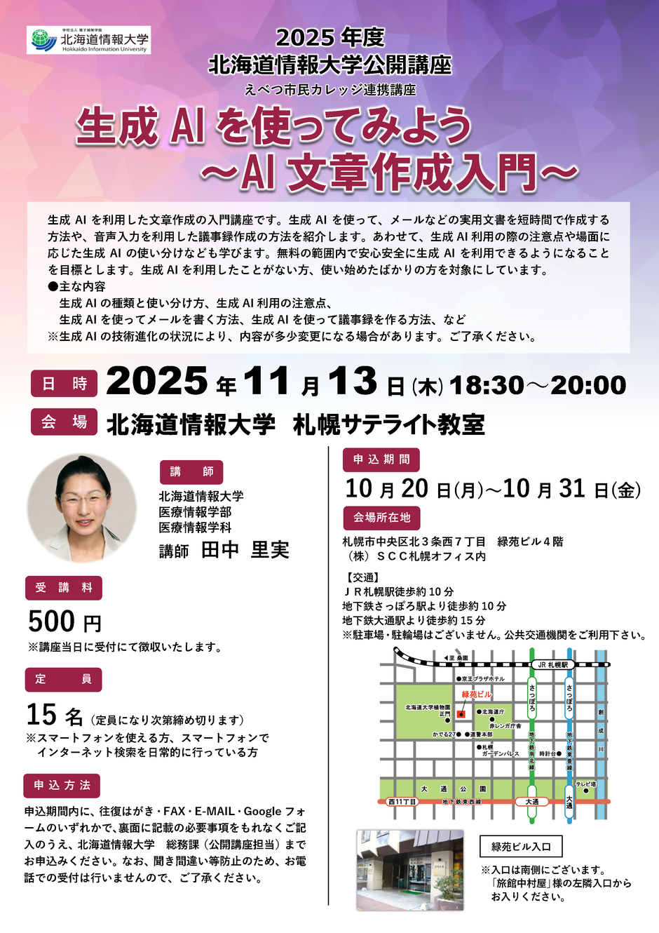 投稿者 | 北海道情報大学 総務課 公開講座担当 |