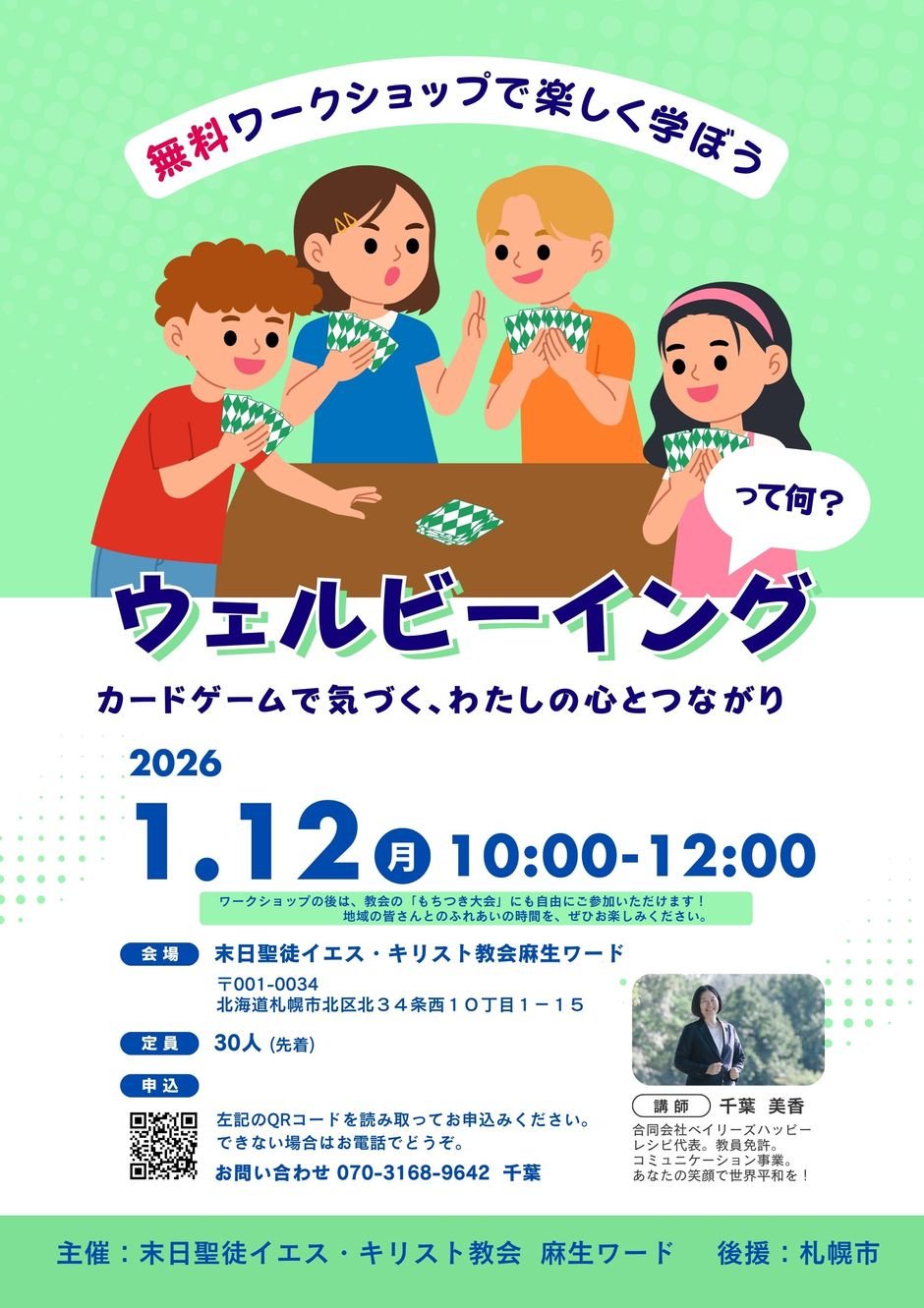 | 場所 | 末日聖徒イエス・キリスト教会 麻生ワード 〒001-0034 北海道札幌市北区北34条西10丁目1−15 |