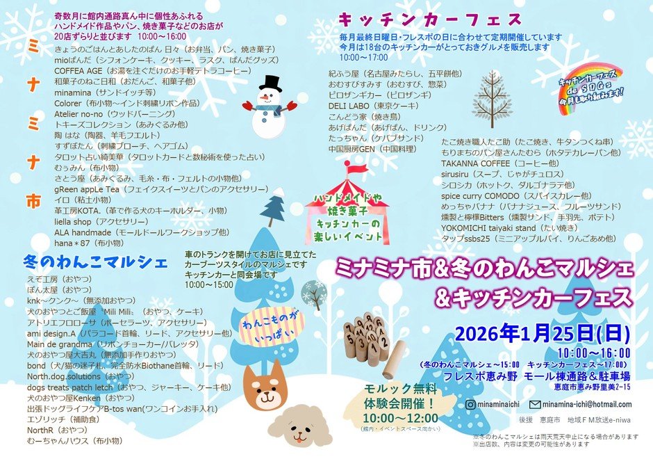 | 時間 | 10:00~16:00(冬のわんこマルシェ~15:00 キッチンカーフェス~17:00) |