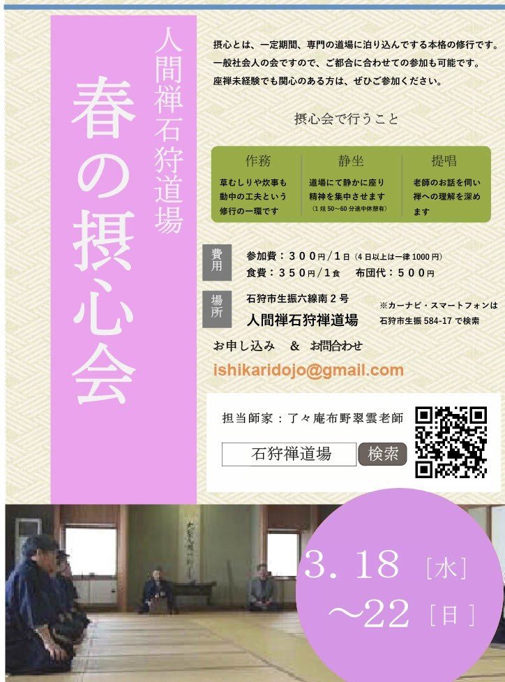 | 場所 | 石狩禅道場 (〒061-3245 石狩市生振六線南2号) |